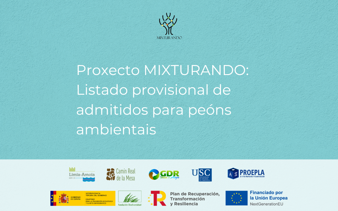 Rematado o prazo de recepción de solicitudes para a bolsa de emprego para a contratación de persoal de servizo ambiental – peóns para o manexo e mantemento de maquinaria forestal, motoserras e desbrozadoras para o proxecto Mixturando, facemos pública a listaxe provisional de admitidos e excluídos en dito proceso: